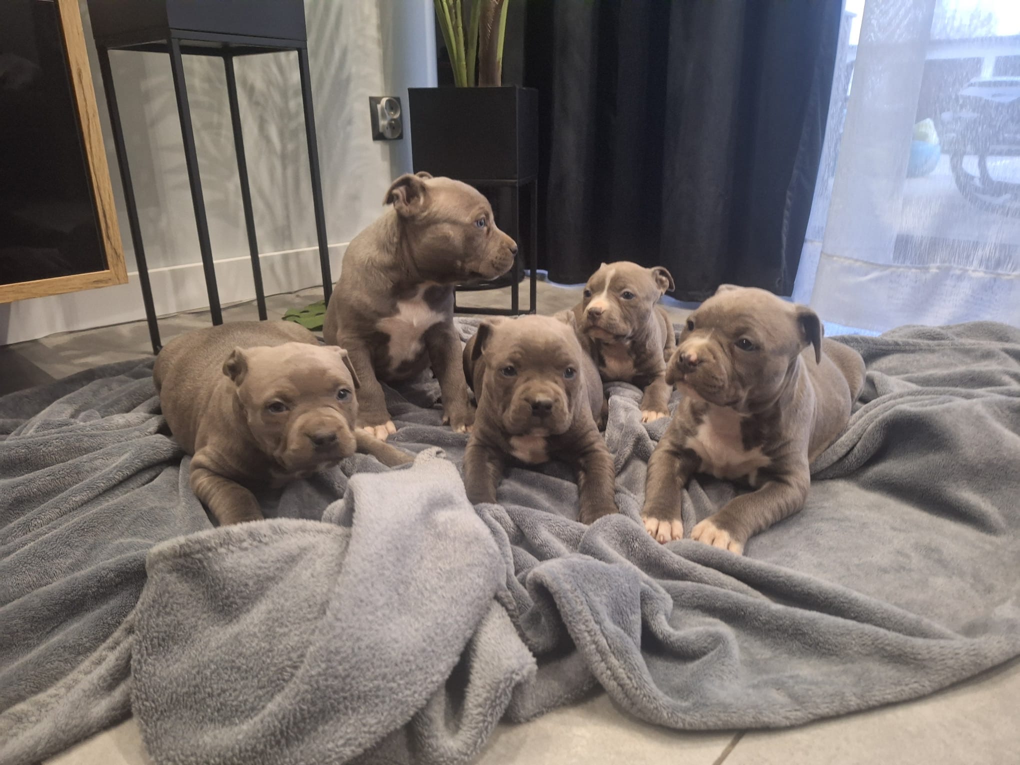 Unsere Zucht entstand aus der Liebe zur American Staffordshire Terrier Rasse. Unsere Hunde sind vollwertige Familienmitglieder und werden mit größter Sorgfalt und Hingabe gezüchtet. Um ihre Gesundheit zu gewährleisten, produzieren wir auch unser eigenes BARF Hundefutter. Unsere Hunde werden regelmäßig tierärztlich untersucht, entwurmt und geimpft. Erfahren Sie mehr über unsere Leidenschaft und unsere Zucht.