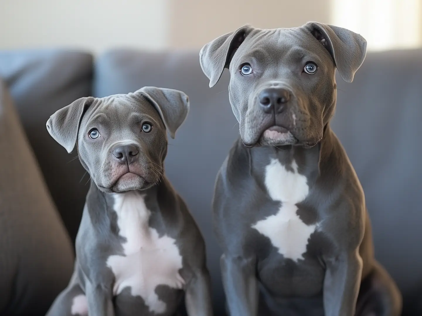 Auswahl der Zuchttiere Bei der Zucht von Amstaffs ist die Auswahl der richtigen Zuchttiere entscheidend. Wir achten darauf, nur gesunde und gut sozialisierte Hunde zur Zucht einzusetzen. Dies gewährleistet, dass die Welpen die besten genetischen Voraussetzungen haben. Unsere Hunde werden regelmäßig auf Erbkrankheiten getestet und erhalten die beste Pflege, um sicherzustellen, dass sie gesund und stark sind. Wir legen großen Wert darauf, dass unsere Zuchttiere nicht nur körperlich gesund sind, sondern auch ein ausgeglichenes Temperament haben. Dies ist wichtig, um sicherzustellen, dass die Welpen später gut sozialisiert und leicht zu handhaben sind. Eine gute Zucht beginnt mit der