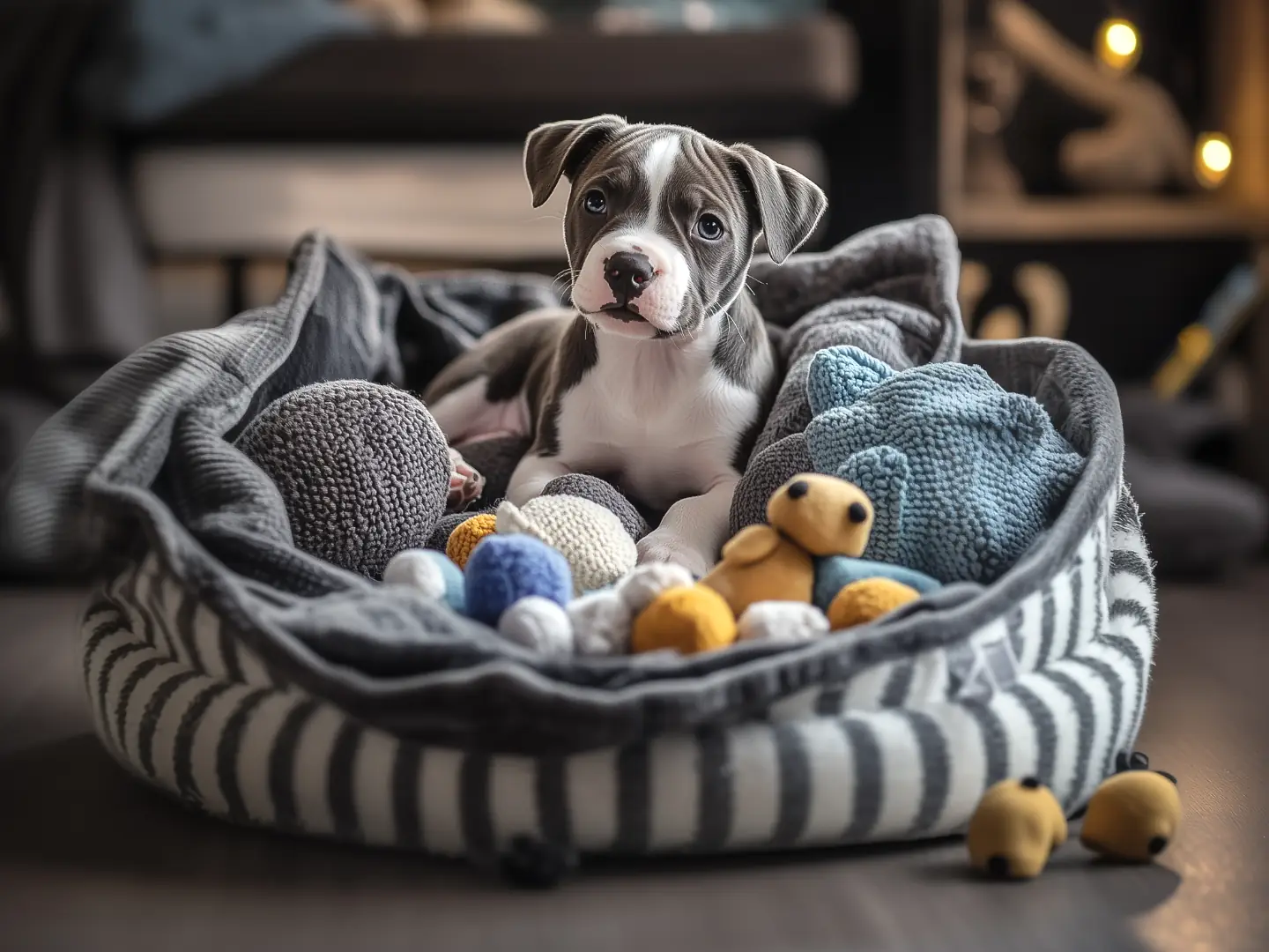 Vorbereitung auf die Ankunft des Welpen Die ersten Wochen mit einem Amstaff-Welpen sind eine aufregende Zeit. Bevor der Welpe einzieht, stellen Sie sicher, dass Ihr Zuhause welpensicher ist. Entfernen Sie Gefahrenquellen wie elektrische Kabel und giftige Pflanzen. Bereiten Sie einen gemütlichen Schlafplatz vor und denken Sie an Spielsachen und Kaustangen, um den Welpen zu beschäftigen. Wir füttern unsere Welpen mit unserer eigenen Bio-Nahrung, um sicherzustellen, dass sie die besten Nährstoffe erhalten. Diese Ernährung unterstützt nicht nur ihr Wachstum, sondern auch ihre allgemeine Gesundheit und Vitalität. Neben der physischen Vorbereitung ist es auch wichtig, sich mental auf die Ankunft